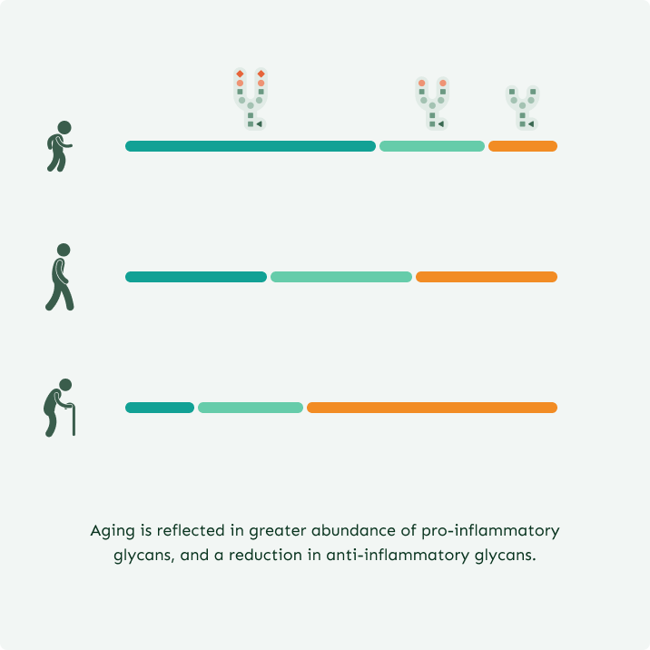 By measuring the balance between pro- and anti-inflammatory glycans, we can determine a personâs biological age, viewed through the lens of the immune system.